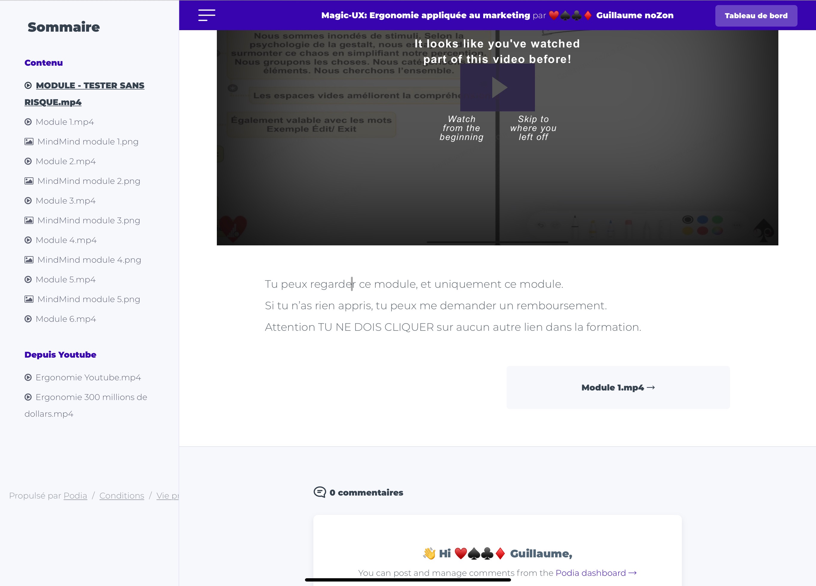 À chaque fois que vous cliquez sur le menu des vidéos, dans les pages des vidéos, le système considère que vous avez regardé la vidéo, MÊME SI VOUS N’AVEZ PAS REGARDÉ 1 seule seconde.